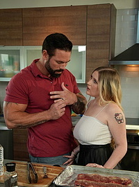 Movie description: "Busty Blonde Emma Shay loves to work some big meat". Emma Shay is learning how to make a steak from a personal chef GI Joey. All the seasoning and tenderizing have gotten Emma so hot and bothered; she has to have GI Joey's meat in her mouth. He's married but can't resist once Emma's big natural tits come out.