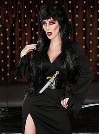 Movie description: "Mistress Of The Gel". Will's favorite holiday is Halloween, He remembers when he was younger, his fantasies were filled with Elvira, a sex symbol of his hay day. Nowadays he finds Halloween is fun for other reasons. He just loves passing on his happiness for the spooky day to all the neighborhood. So, naturally when he goes looking for the candy dish he always uses for the candy, he can't find it! His wife, RayVeness is heard from the bedroom, calling him to see how she used the bowl. When Will joins her, all his freaky fantasies come true in one instance, not only is his candy dish full of a treat just for him on his favorite holiday, but his wife is dressed up as Elvira! Will sees now why he has always been madly in lust with his wife. She's everything Elvira was and MORE. She whips out her humongous natural tits and lets him use his hard cock to tease her in ways he's always dreamed of. Happy Halloween!