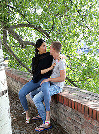 Movie description: "Asian in Tight Jeans Gives Footjob". A romantic hand-in-hand walk with the lovely Katana always puts Mark in the mood. On this particular day, stopping near the water to kiss, Katana's tight jeans inspire more than ever. Luckily, the beautiful Asian's apartment is just steps away. Leading him to the bed, Katana climbs on top of Mark, grinding against him while smothering him with kisses. Removing his jean and underwear, she takes his hard cock in her hands and then her mouth, before Mark pulls off her shoes to pleasure her perfect feet with his tongue. Bringing her feet to his thick dick, Katana gives Mark a sensual footjob as he moans standing at the end of the bed. To return the favor, the hung stud licks Katana's pussy to orgasm, then pounds her in a rough sex session that ends with a huge creampie.
