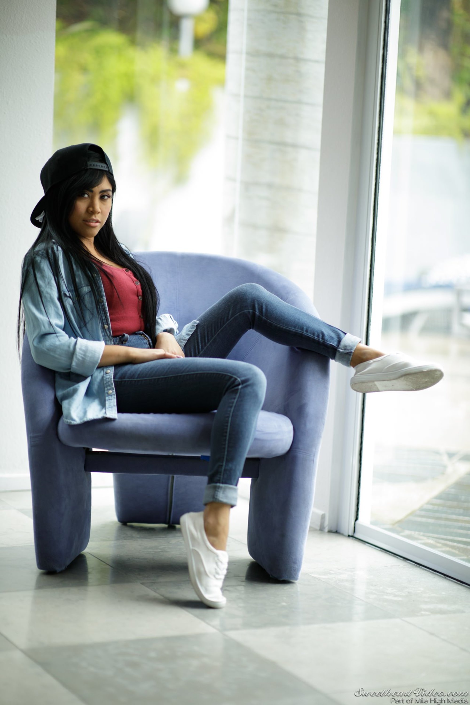 Photos description: "Behave Yourself Scene 2". Angela's (Demi Sutra) dad recently moved to Jenny's (Ember Snow) house. Like any new stepsister the tension between the two is at its limits. The two girls have some dirty laundry to clean and when Angela goes into Jenny's room to ask her to turn down the music things don't go the way she expected. They get into an argument and start fighting. The two girls quickly realize that if everyone is nicer to each other things could be much more interesting.