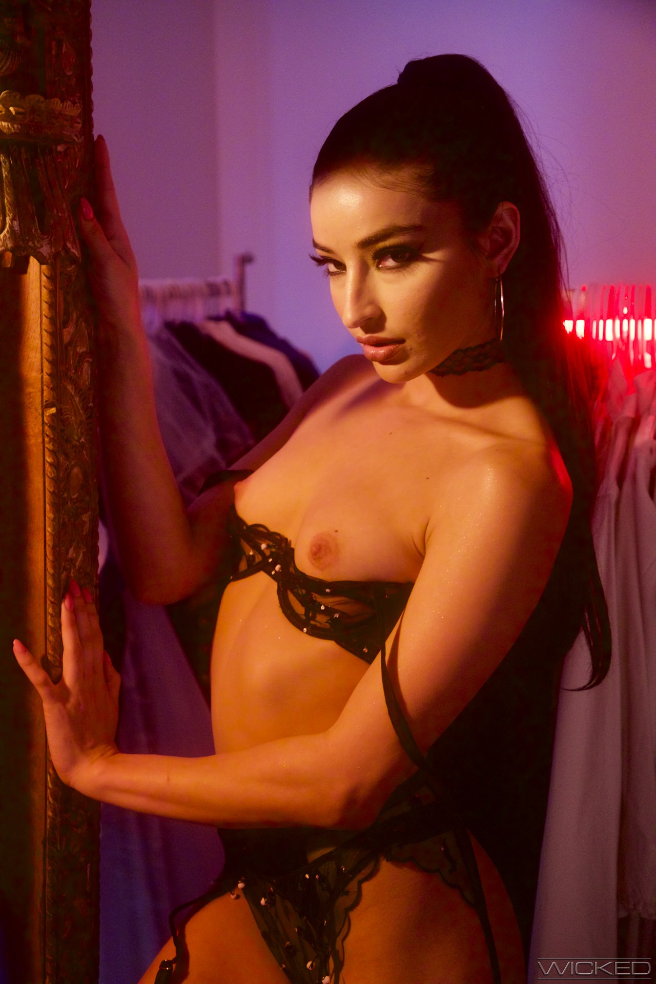 Dark-haired minx with big naturals gets fucked in the bathroom