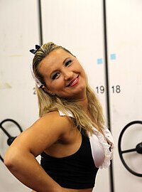 Blonde-haired stripper with big natural tits sucks and rides BBC