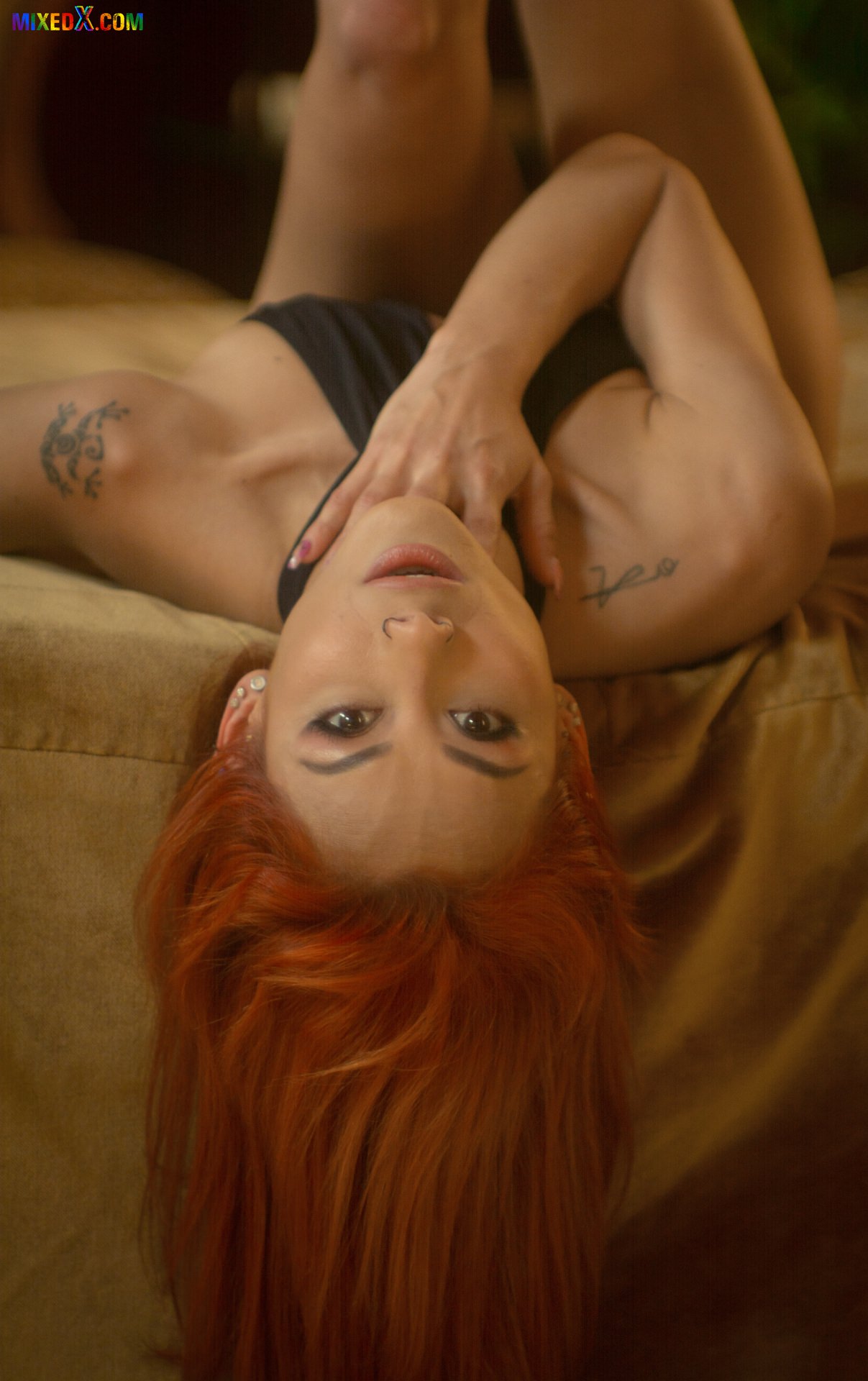 Photos description: "Taken". Once in life, everybody experiences heartbreaks. Veronica Leal, the beautiful young redhead Colombian, can't get out of her mind that her love cheated on her. She struggles and suffers because she still loves Zazie Skymm. She tries to forget and forgive her blonde, blue-eyed love, but at the same time, she wants revenge. Veronica thinks about Christina and gets angry. She has a clear vision of how Christina licks and kisses Zazie behind her back. She locked Zazie in the wardrobe to punish her for a while, but she decided to get over it and start over.